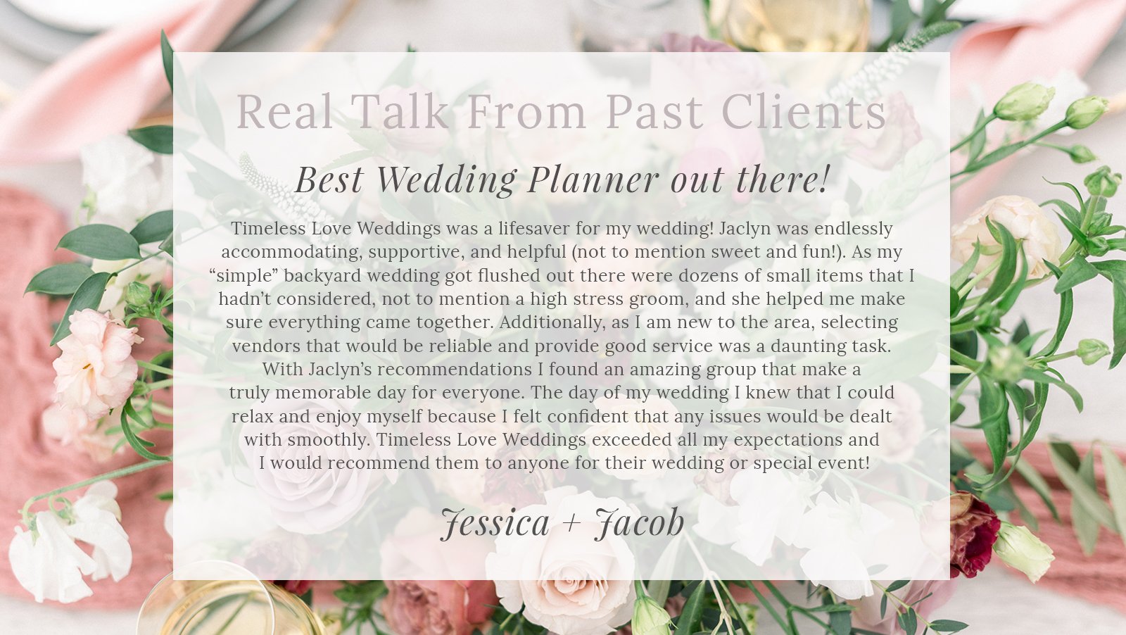 Before joining Timeless Love Weddings in 2018, I started my career in event planning through internships and hospitality positions. That’s where I learned how to serve others and give clients the very best.